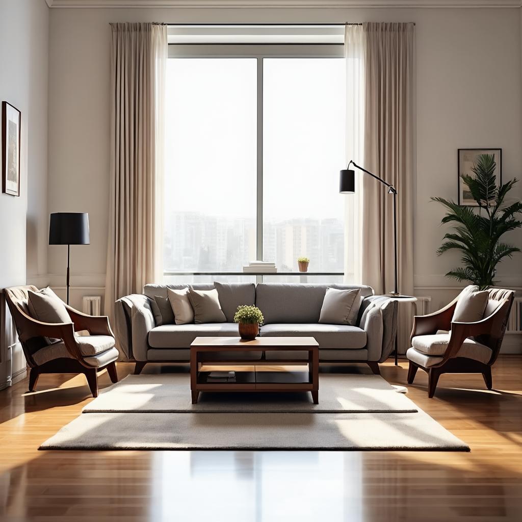 Set sofa 3-2-1 dengan meja kopi, desain modern dan nyaman